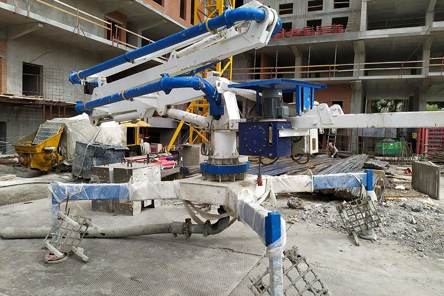 Использование гидравлической стрелы обеспечивает быструю, равномерную и контролируемую подачу бетона, что особенно важно при работе на высоте и в стеснённых условиях. Это позволяет сократить сроки строительства и повысить качество монолитных конструкций.