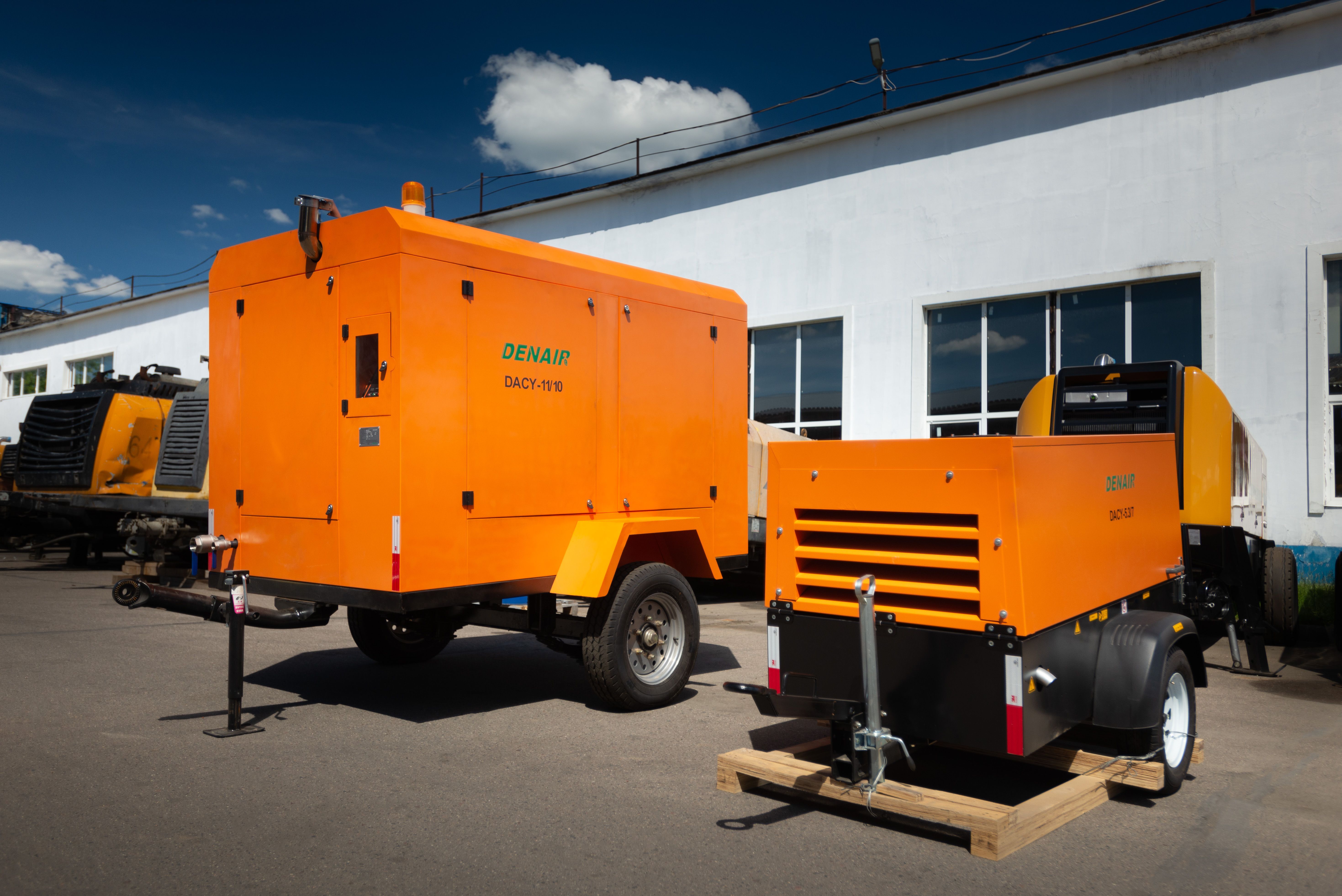 Переносные винтовые воздушные компрессоры Denair широко используются во всех видах тяжелых условий эксплуатации. Они востребованы в таких отраслях, такие как горнодобывающая промышленность, гидроэнергетика, добыча нефти и газа, скважина, верфь, строительство, химическая промышленность, карьер, пескоструйная обработка, опрессовка трубопровода, общественные работы, и т.д.